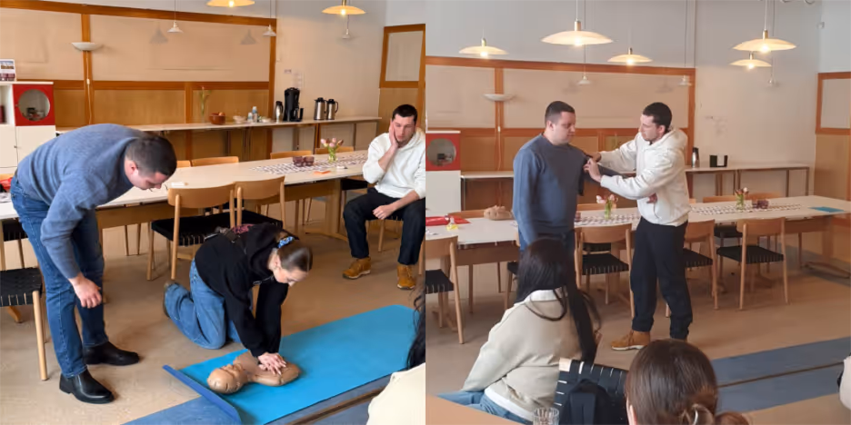 The doctors conducted a hands-on first aid workshop for Ukrainian youth in Gothenburg. The session was highly practical, covering CPR and how to respond if someone loses consciousness.